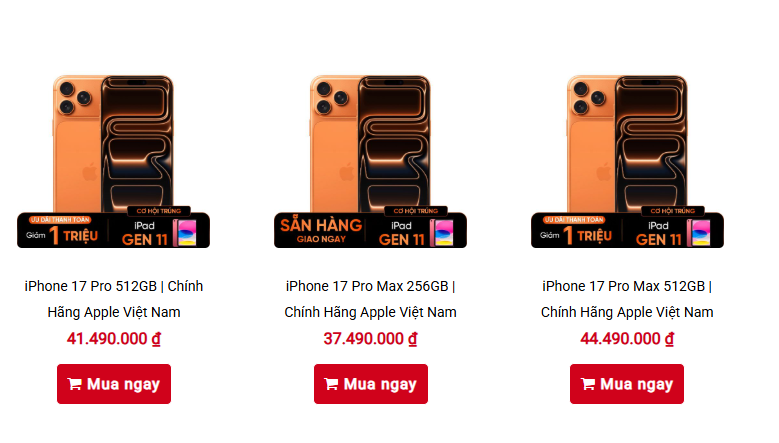 Giá iPhone 17 tại việt nam