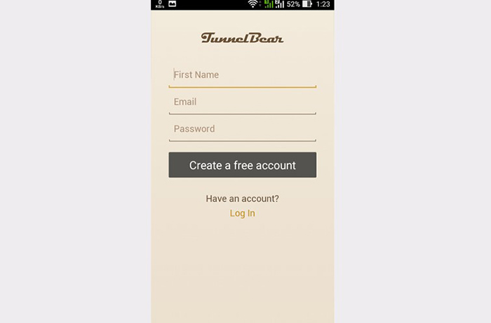 Bước 2: Cài đặt xong các bạn mở TunnelBear VPN lên, ở lần đầu sử dụng ứng dụng sẽ yêu cầu bạn tạo tài khoản.