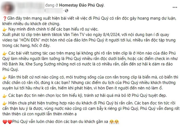 Ngay khi có những thông tin được lan truyền trên mạng xã hội, một vài người dân sống và làm việc trên đảo Phú Quý lập tức đính chính lại. Theo tìm hiểu thì nội dung bài post cảnh báo đang được lan truyền chưa đầy đủ thông tin.