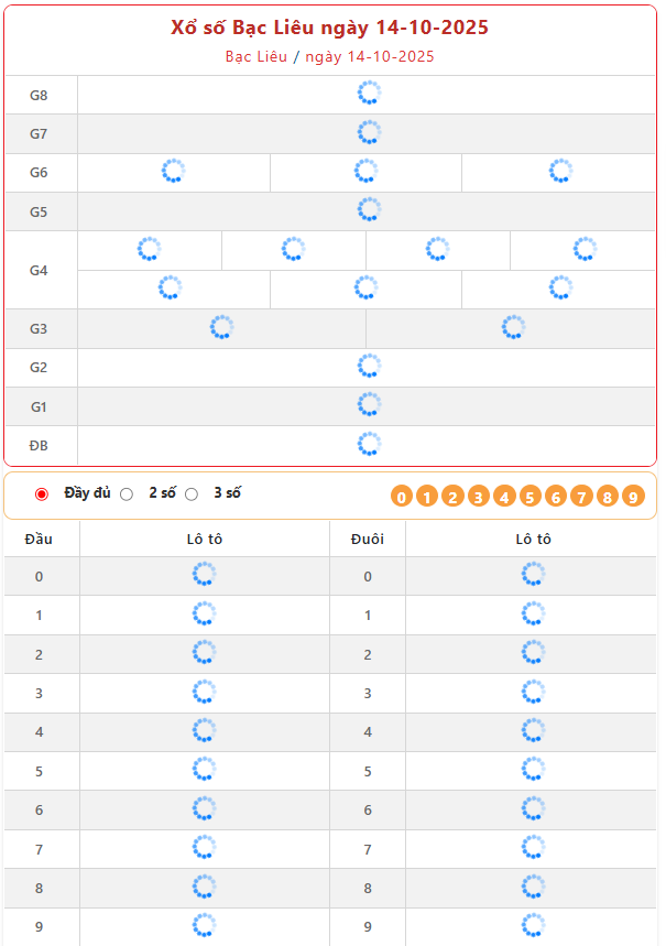 Kết quả xổ số Bạc Liêu ngày 14/10/2025