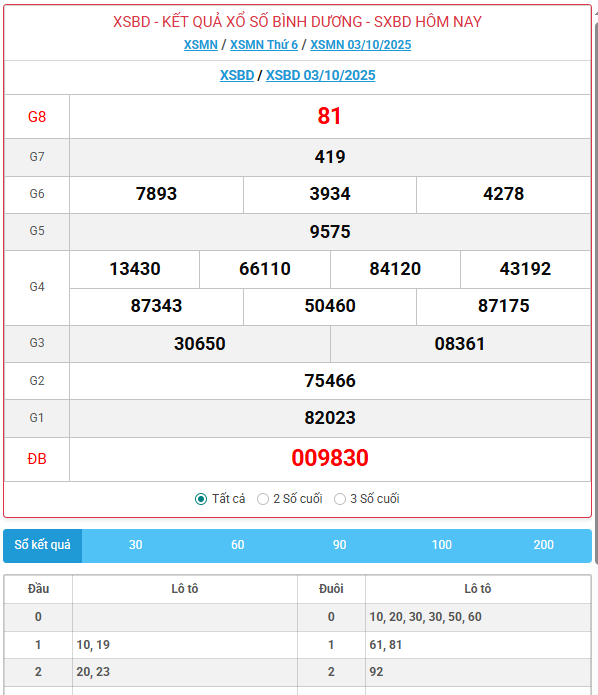 Kết quả xổ số Bình Dương ngày 03/10/2025