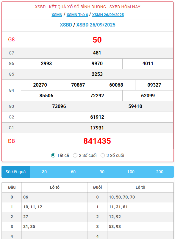 Kết quả xổ số Bình Dương ngày 26/09/2025