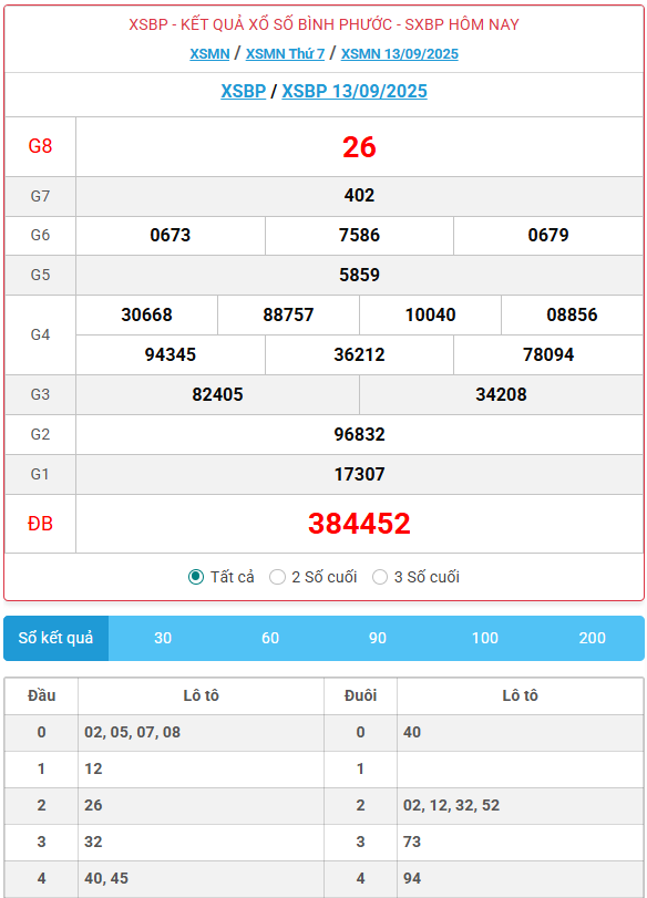 Kết quả xổ số Bình Phước ngày 13/09/2025