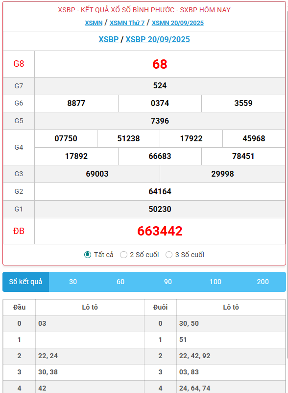 Kết quả xổ số Bình Phước ngày 20/09/2025