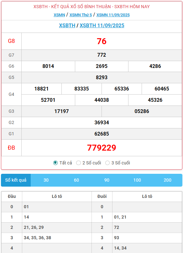 Kết quả xổ số Bình Thuận ngày 11/09/2025