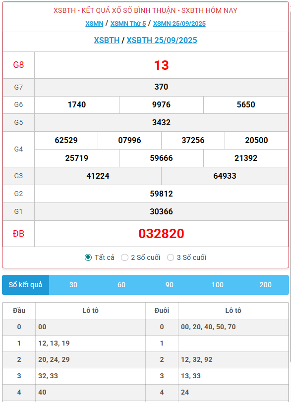 Kết quả xổ số Bình Thuận ngày 25/09/2025