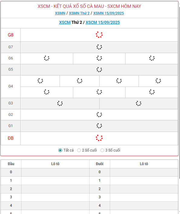 Kết quả xổ số Cà Mau ngày 15/09/2025