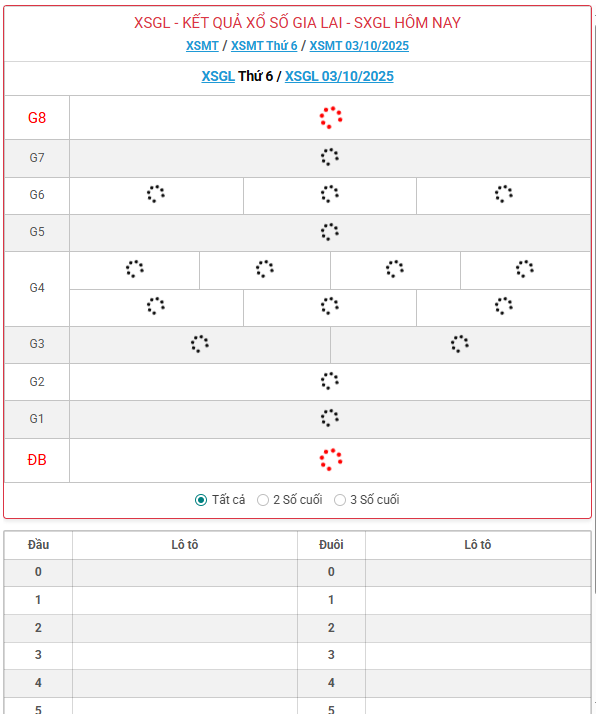 Kết quả xổ số Gia Lai ngày 03/10/2025
