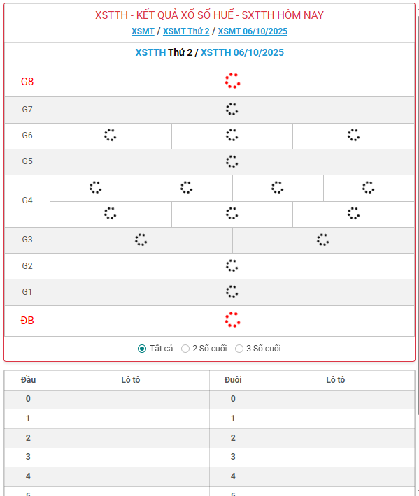 XSDTTH 06/10 Xổ số Huế được phát hành bởi công ty xổ số kiến thiết Huế, quay thưởng vào lúc 17h15 thứ Hai hàng tuần. Trực tiếp kết quả XSTTH cập nhật nhanh nhất