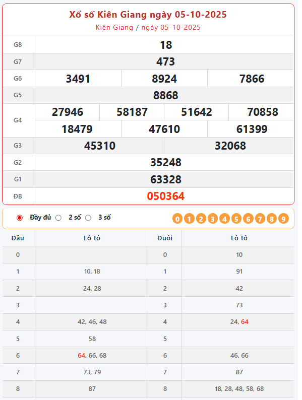 Kết quả xổ số Kiên Giang ngày 05/10/2025