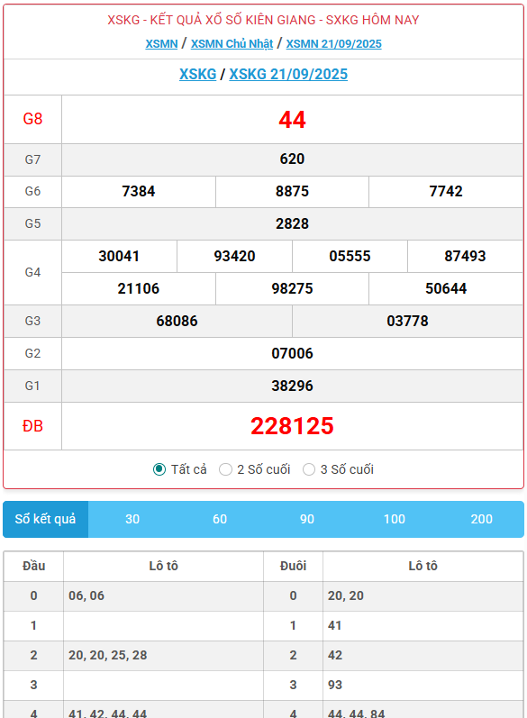 Kết quả xổ số Kiên Giang ngày 21/09/2025