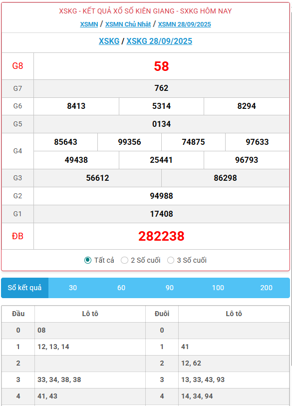 Kết quả xổ số Kiên Giang ngày 28/09/2025
