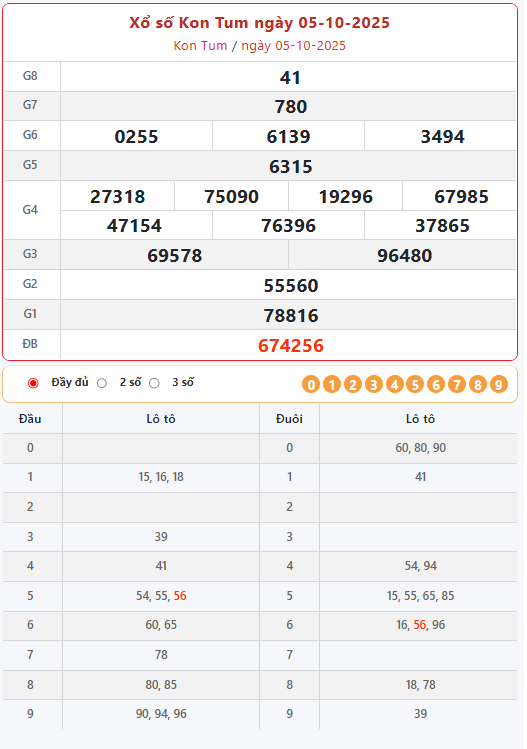 Kết quả xổ số Kon Tum ngày 05/10/2025