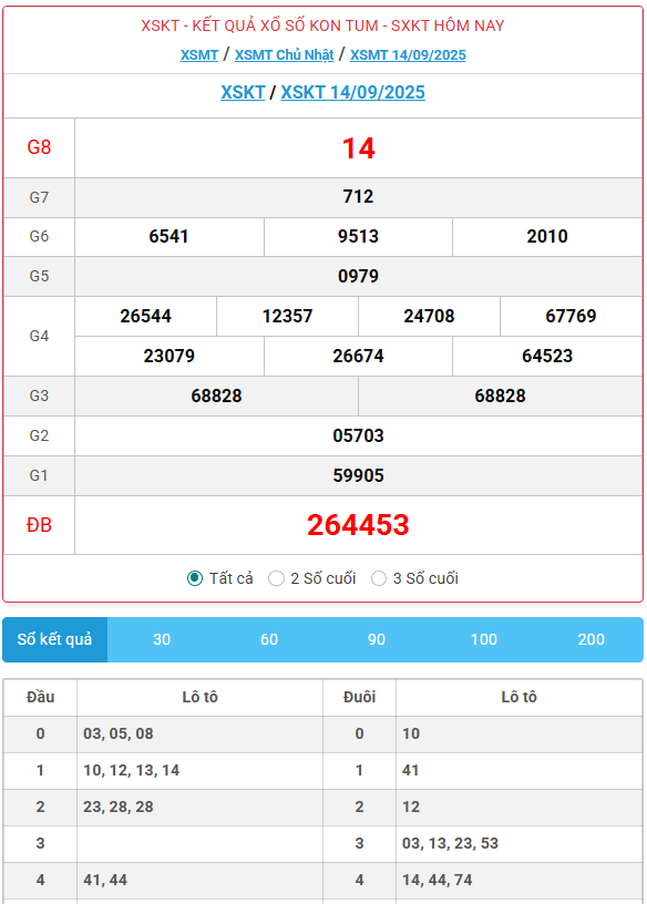 Kết quả xổ số Kon Tum ngày 14/09/2025