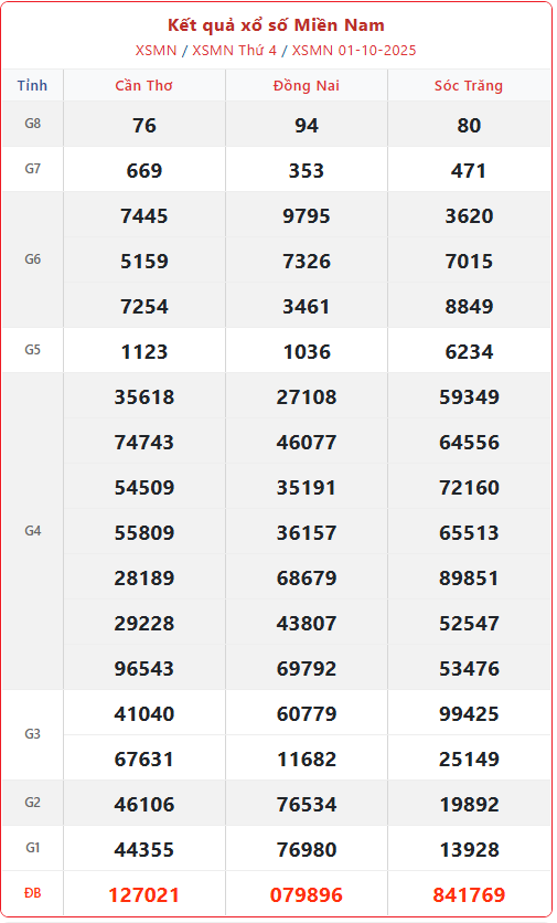 Xổ Số Miền Nam - Kết quả xổ số trực tiếp 01/10/2025