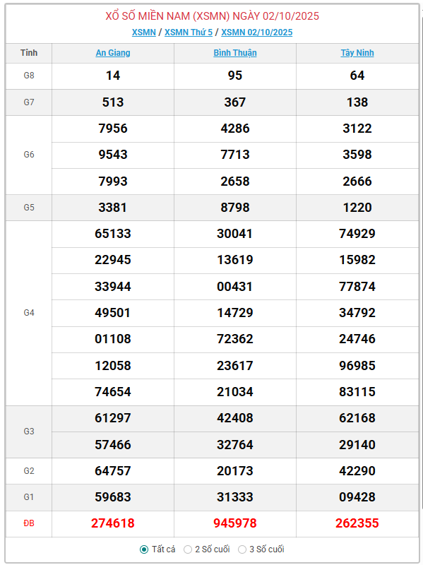 Xổ Số Miền Nam - Kết quả xổ số trực tiếp 02/10/2025