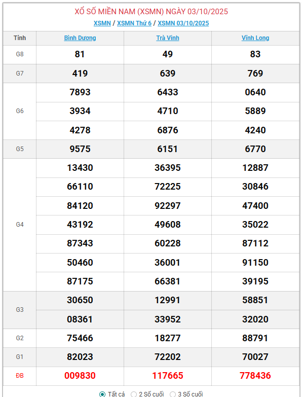 Xổ Số Miền Nam - Kết quả xổ số trực tiếp 03/10/2025