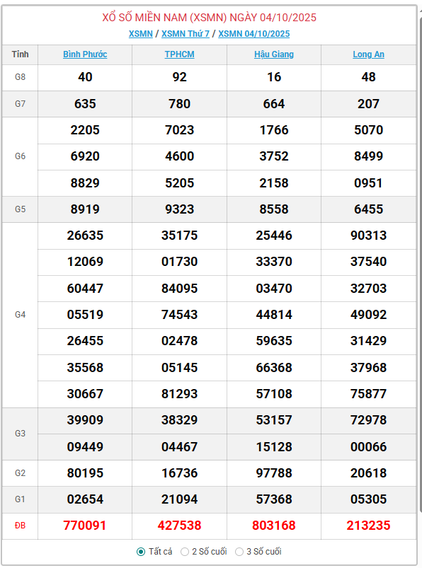 Xổ Số Miền Nam - Kết quả xổ số trực tiếp 04/10/2025
