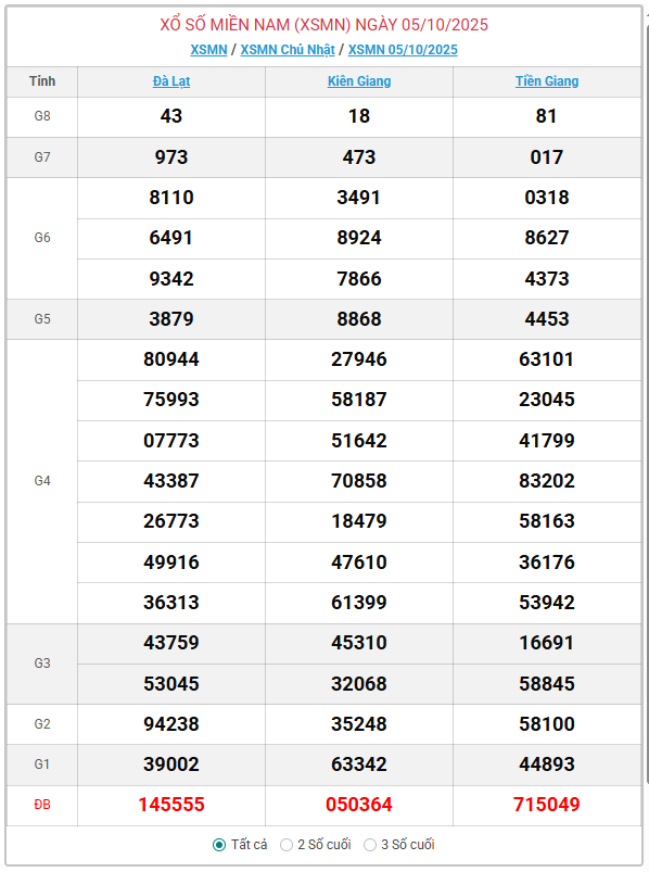 Xổ Số Miền Nam - Kết quả xổ số trực tiếp 05/10/2025