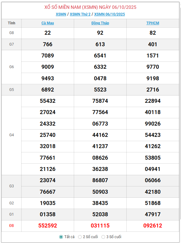 Xổ Số Miền Nam - Kết quả xổ số trực tiếp 06/10/2025