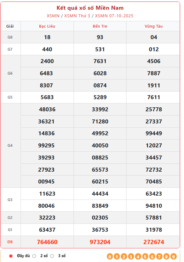 Xổ Số Miền Nam - Kết quả xổ số trực tiếp 07/10/2025