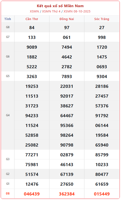 Xổ Số Miền Nam - Kết quả xổ số trực tiếp 08/10/2025