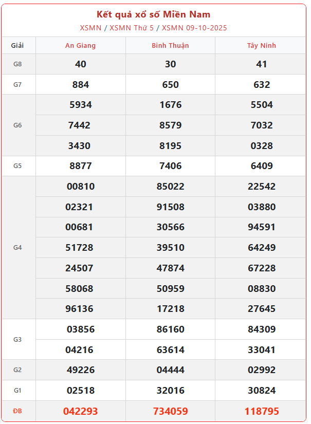 Xổ Số Miền Nam - Kết quả xổ số trực tiếp 09/10/2025
