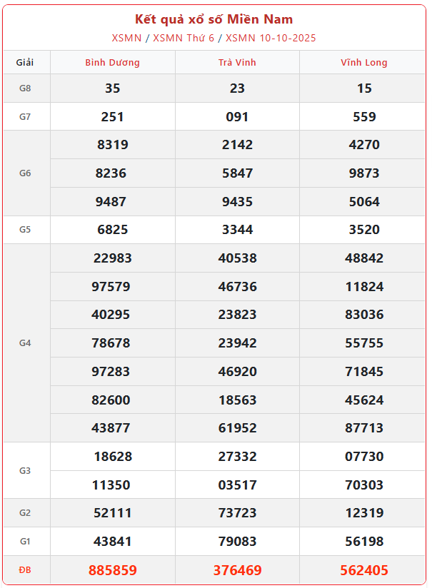 Xổ Số Miền Nam - Kết quả xổ số trực tiếp 10/10/2025