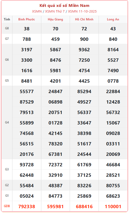 Xổ Số Miền Nam - Kết quả xổ số trực tiếp 11/10/2025