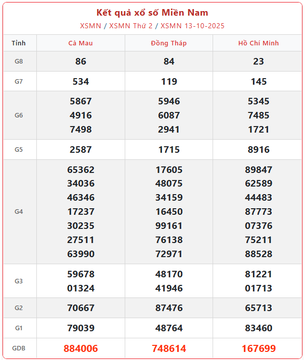 Xổ Số Miền Nam - Kết quả xổ số trực tiếp 13/10/2025