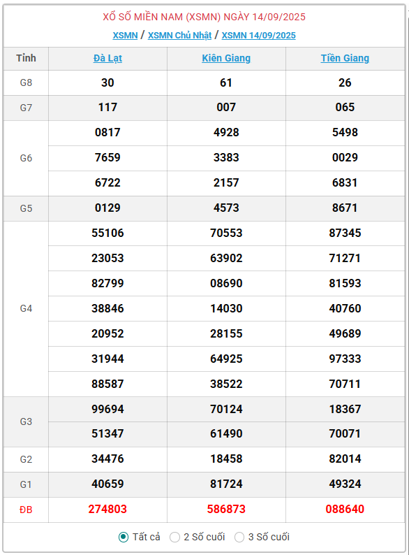 Xổ Số Miền Nam - Kết quả xổ số trực tiếp 14/09/2025