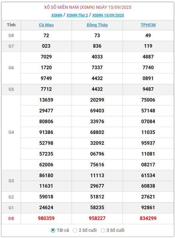 Xổ Số Miền Nam - Kết quả xổ số trực tiếp 15/09/2025