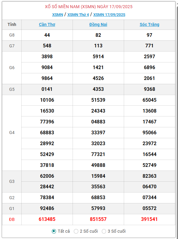 Xổ Số Miền Nam - Kết quả xổ số trực tiếp 17/09/2025