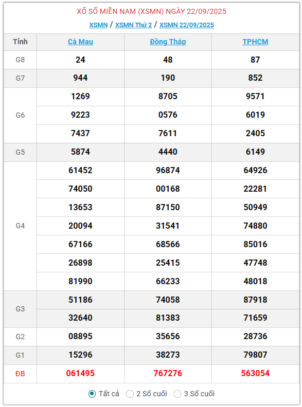 Xổ Số Miền Nam - Kết quả xổ số trực tiếp 22/09/2025