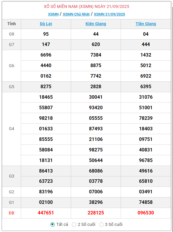 Xổ Số Miền Nam - Kết quả xổ số trực tiếp 21/09/2025