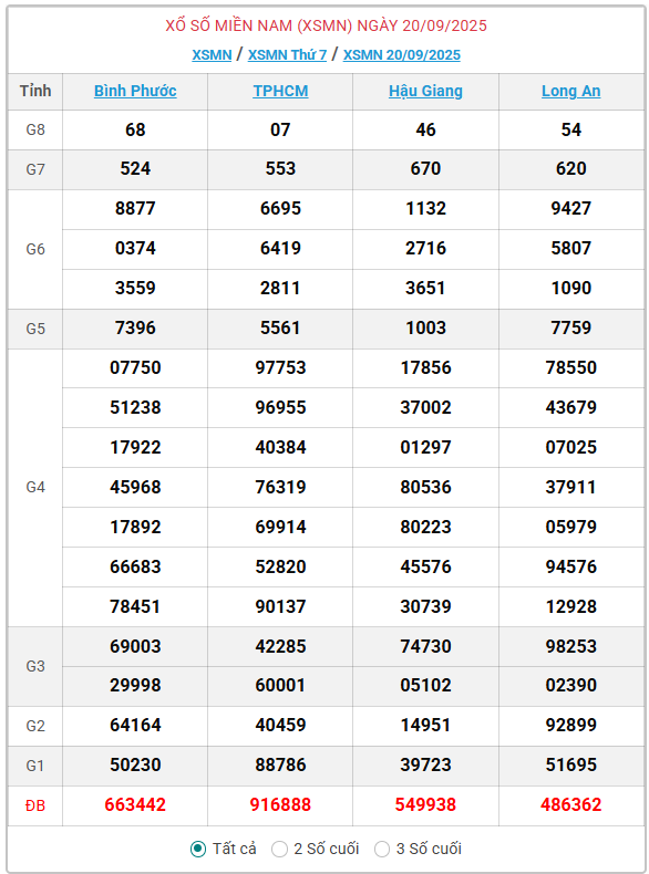 Xổ Số Miền Nam - Kết quả xổ số trực tiếp 20/09/2025
