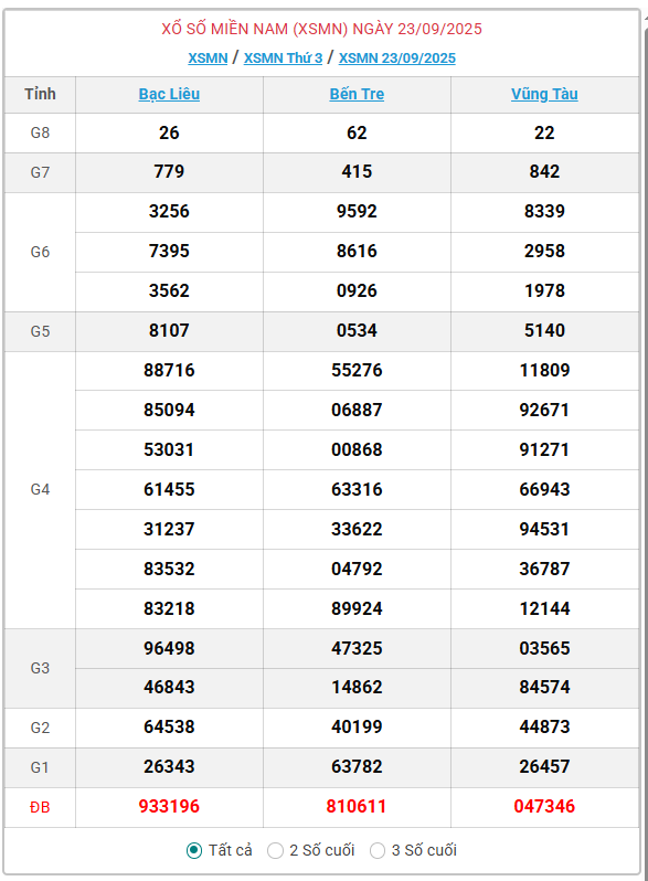 Xổ Số Miền Nam - Kết quả xổ số trực tiếp 23/09/2025