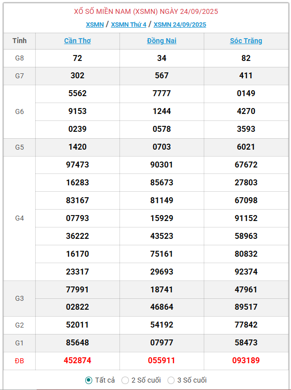 Xổ Số Miền Nam - Kết quả xổ số trực tiếp 24/09/2025