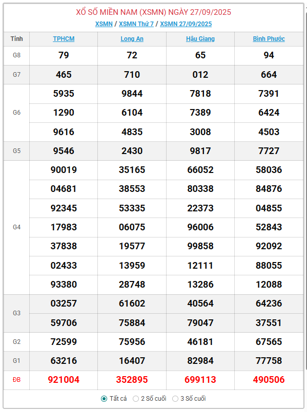 Xổ Số Miền Nam - Kết quả xổ số trực tiếp 27/09/2025