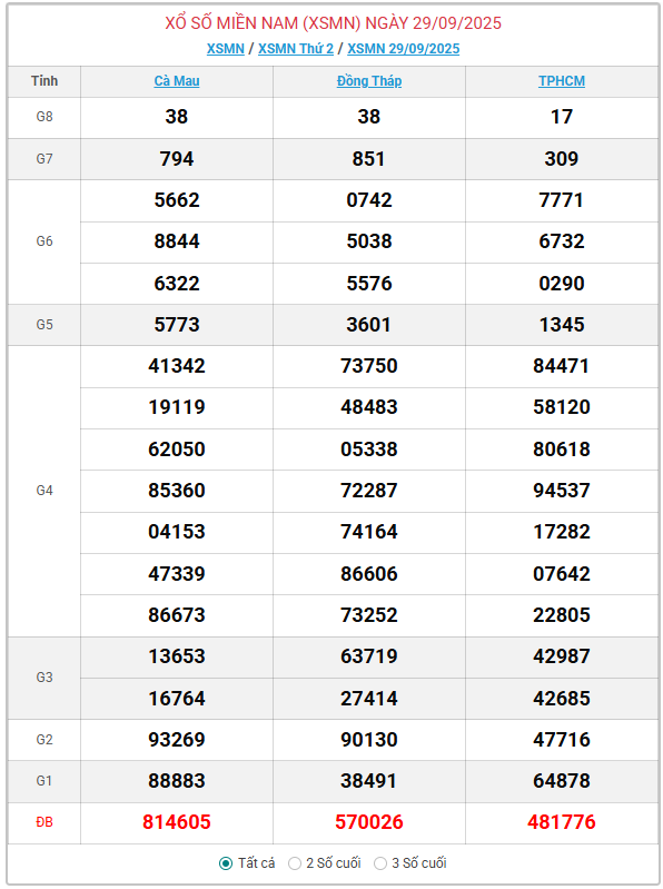 Xổ Số Miền Nam - Kết quả xổ số trực tiếp 29/09/2025