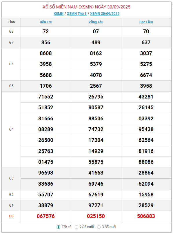 Xổ Số Miền Nam - Kết quả xổ số trực tiếp 30/09/2025