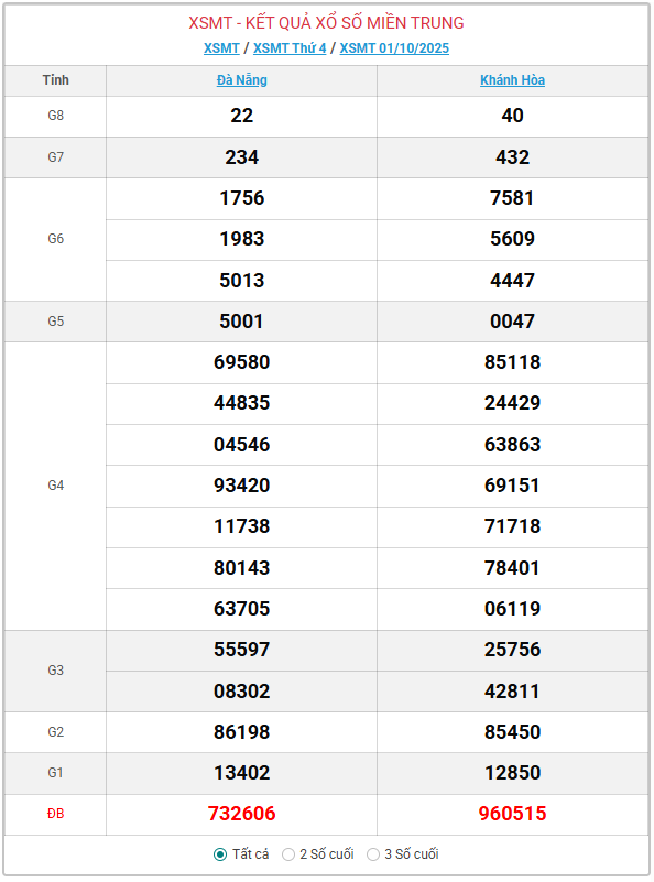 Xổ Số Miền Trung - Kết quả xổ số trực tiếp 1/10/2025