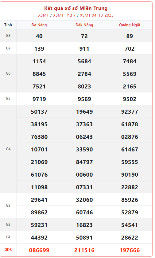 Xổ Số Miền Trung - Kết quả xổ số trực tiếp 04/10/2025