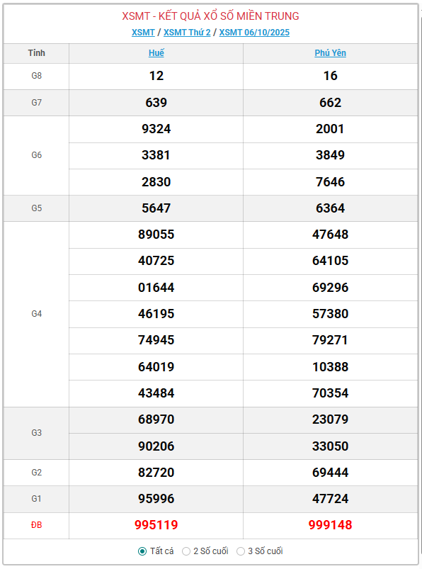 Xổ Số Miền Trung - Kết quả xổ số trực tiếp 06/10/2025