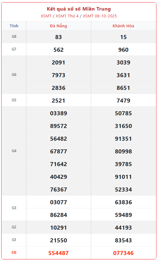 Xổ Số Miền Trung - Kết quả xổ số trực tiếp 08/10/2025