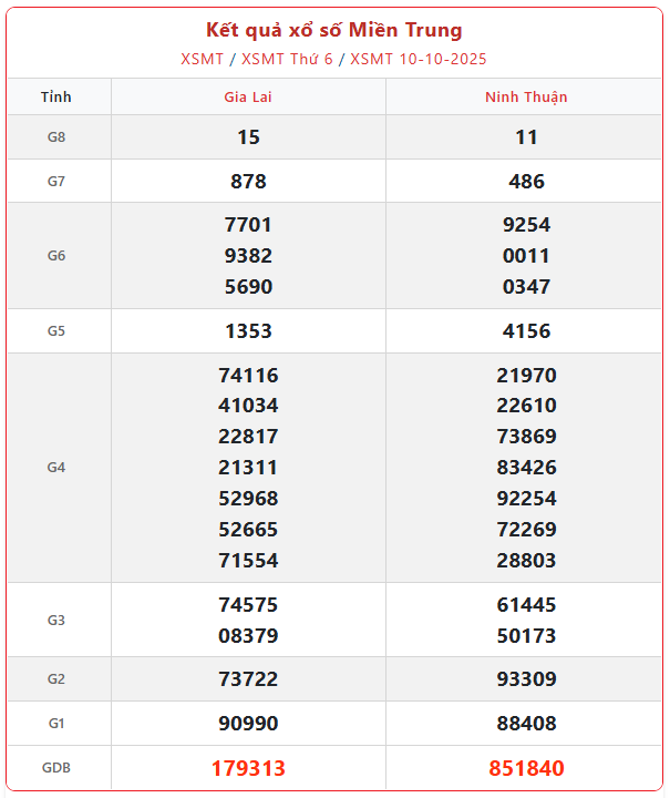 Thứ Sáu: XSMT diễn ra tại hai đài Gia Lai (XSGL) và Ninh Thuận (XSNT)