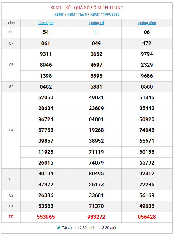 Xổ Số Miền Trung - Kết quả xổ số trực tiếp 11/09/2025