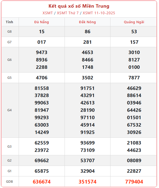 Xổ Số Miền Trung - Kết quả xổ số trực tiếp 11/10/2025