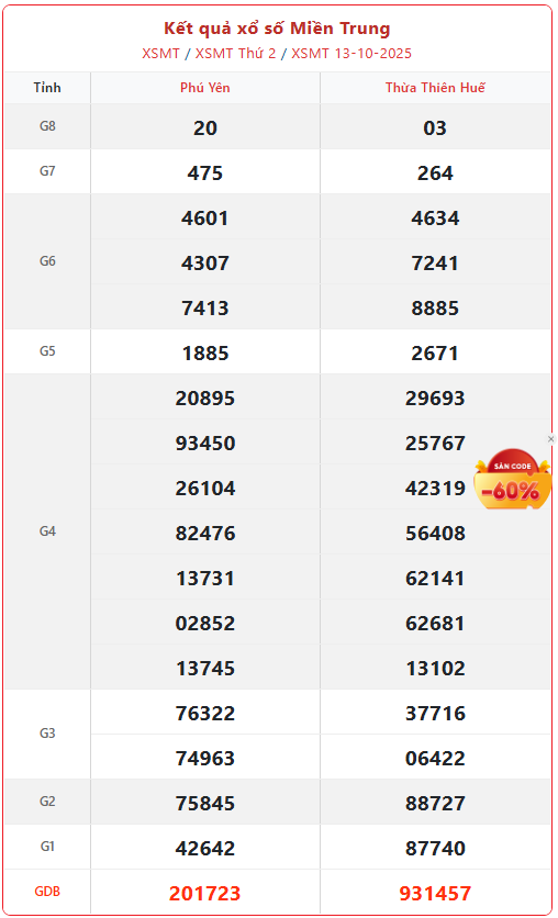 Xổ Số Miền Trung - Kết quả xổ số trực tiếp 13/10/2025