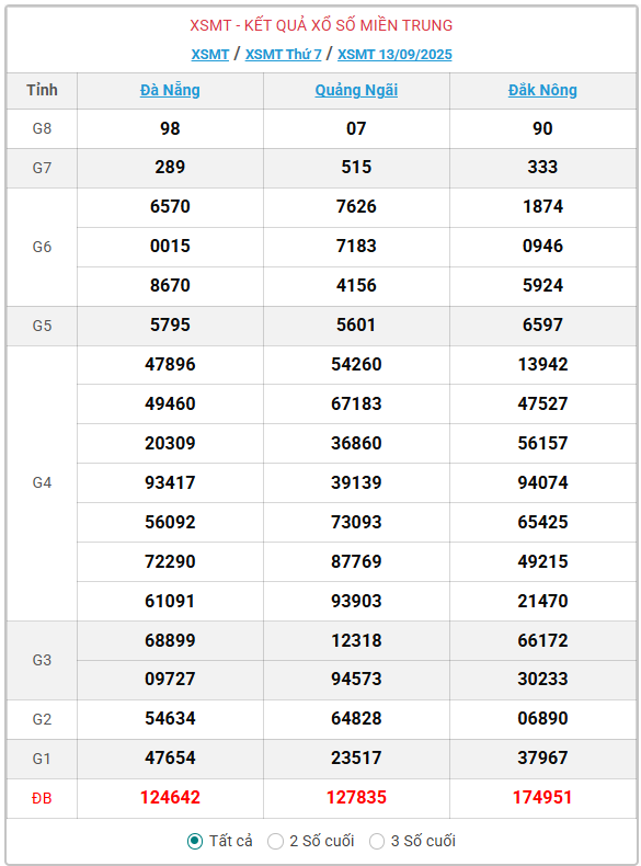 Xổ Số Miền Trung - Kết quả xổ số trực tiếp 13/09/2025